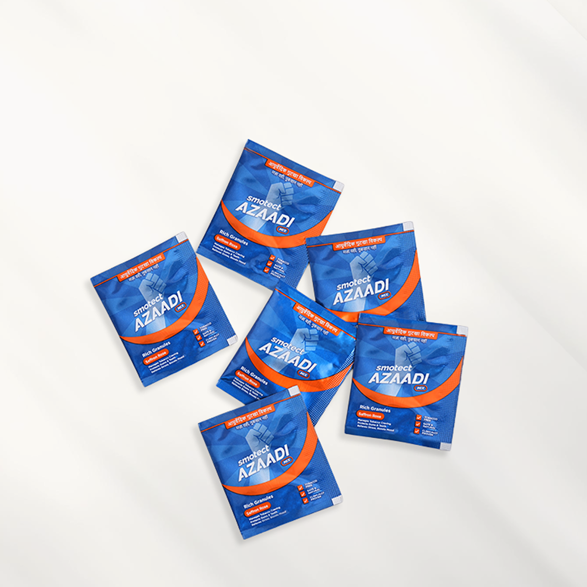 Smotect Azaadi is available in Tablets, Mix, and Pop to target different forms of tobacco addiction—smoking, vaping, or Gutkha. Azaadi Mix and Pop act as habit replacements, delivering visible results from day one so you can quit at your own pace. For deeper recovery, Azaadi Tablets are designed as a 12-week course that helps break the addiction cycle and repair tobacco-induced damage.